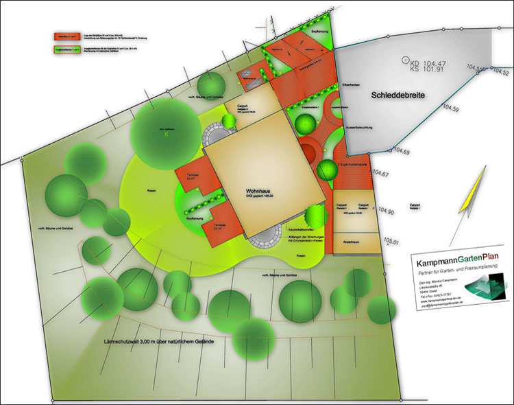 bereits vor der Baumaßnahme vorhandenem Rahmengrün aus Bäumen und